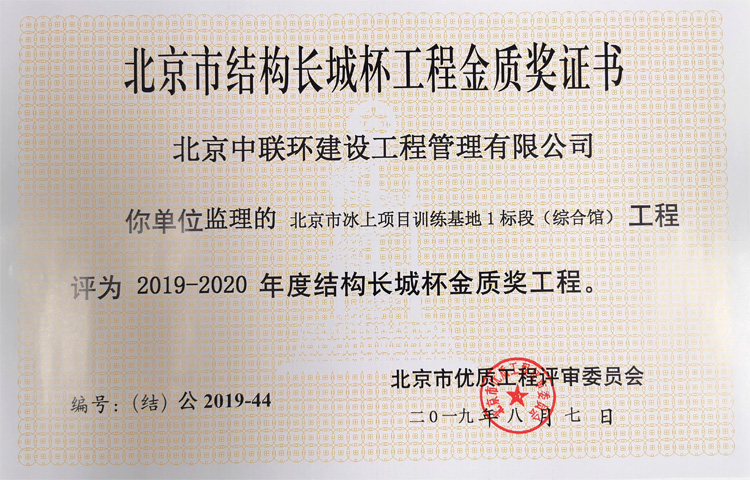 熱烈祝賀公司監(jiān)理的“2019年中國北京世界園藝博覽會國際館項目”和“北京市冰上項目訓(xùn)練基地1標(biāo)段(綜合館)”工程評為2019-2020年度結(jié)構(gòu)長城杯金質(zhì)獎工程。