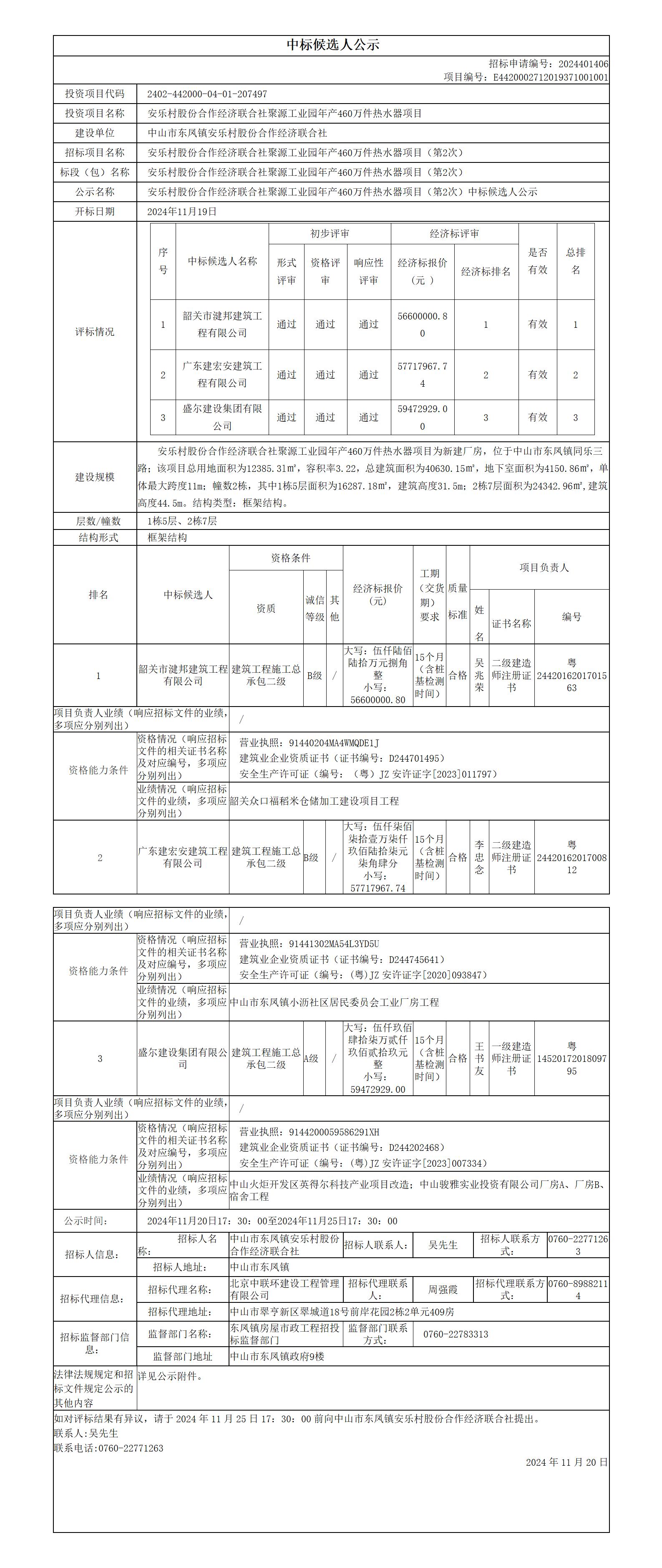 安樂村股份合作經(jīng)濟聯(lián)合社聚源工業(yè)園年產(chǎn)460萬件熱水器項目_中標候選人公示